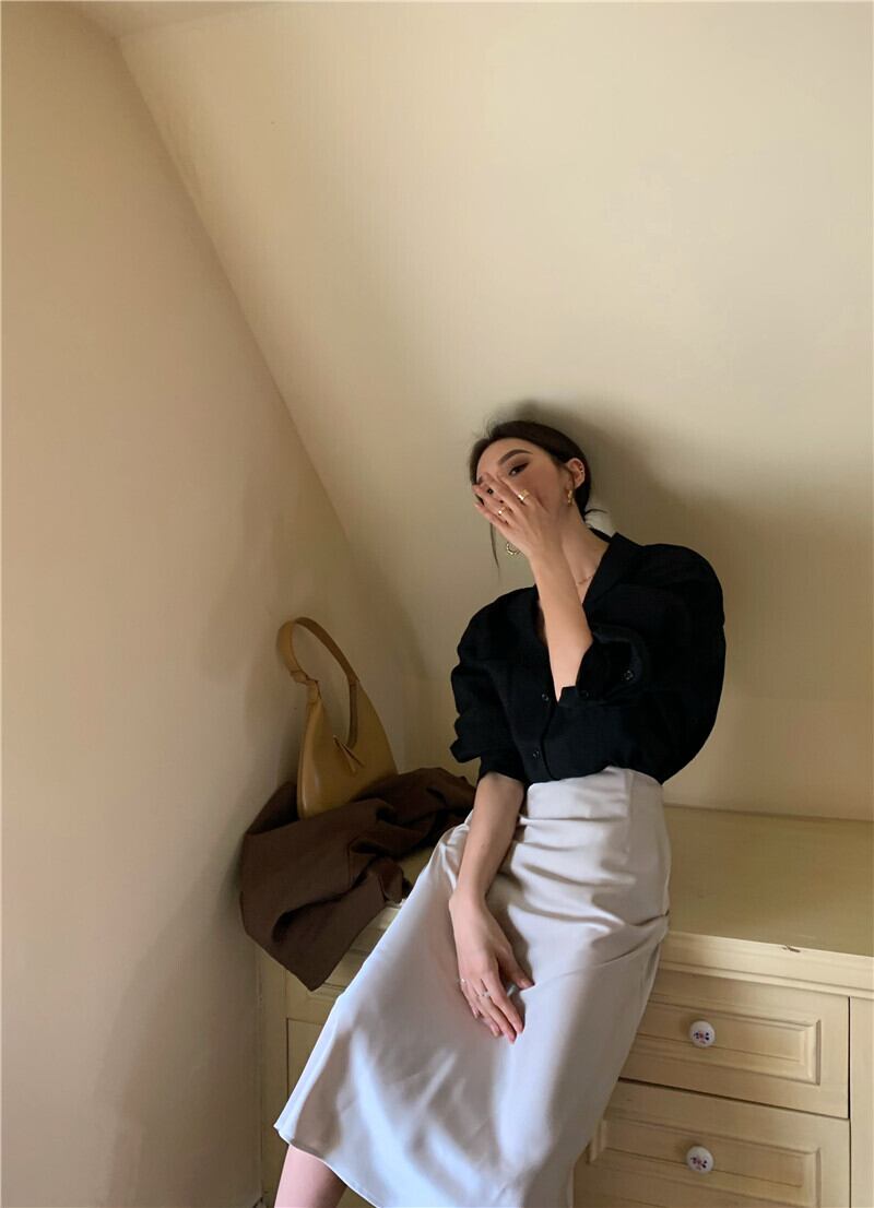 ブラックシャツ サマールーズトップス ロング 夏物 フラワークラフター500880952