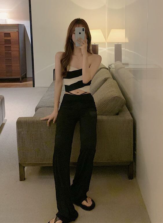色:チューブトップシングルピース,黒のネクタイパンツワンピース
