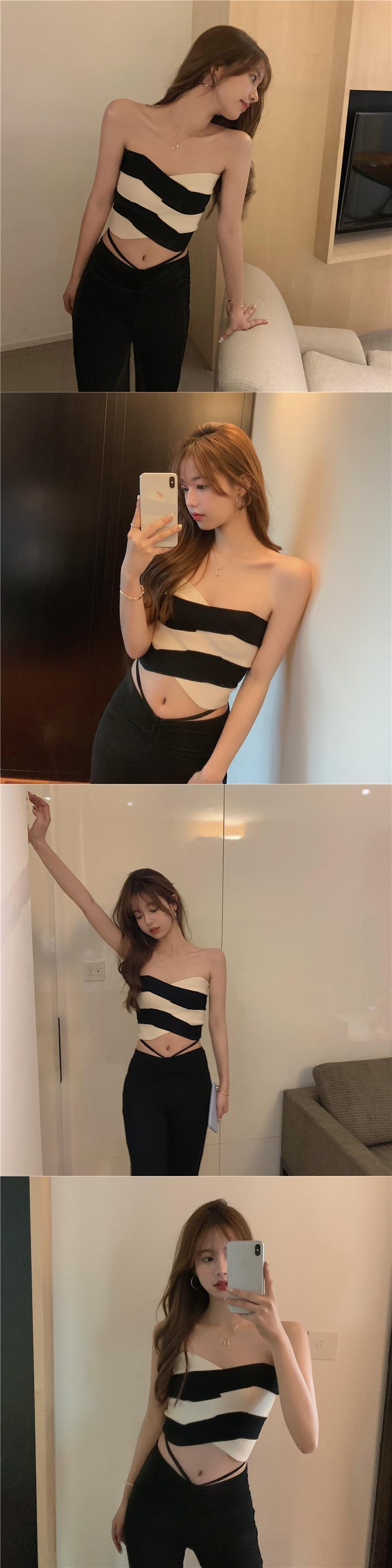 ストライプトップス レディースサマーバックスリムショートストラップレス 夏物 フラワークラフター84318359569