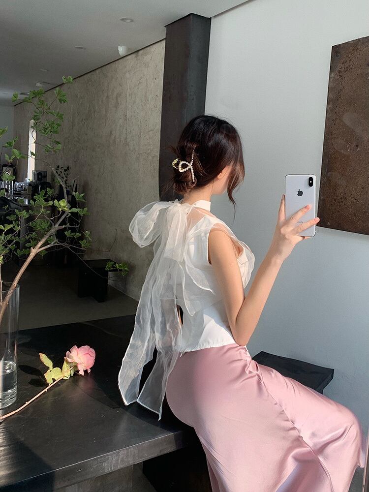 ホルターノースリーブシャツ レディースサマーウェストメッシュブラウス 夏物 ステッチ フラワークラフター78579024968