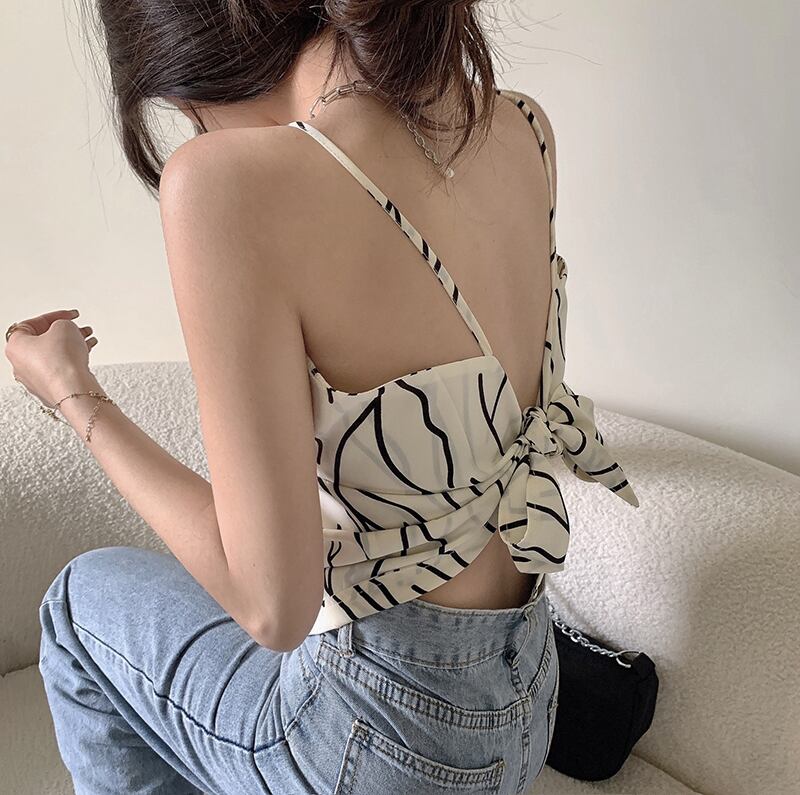 サマープリントトップス スリムショートトライアングル 夏物 フラワークラフター50783828925
