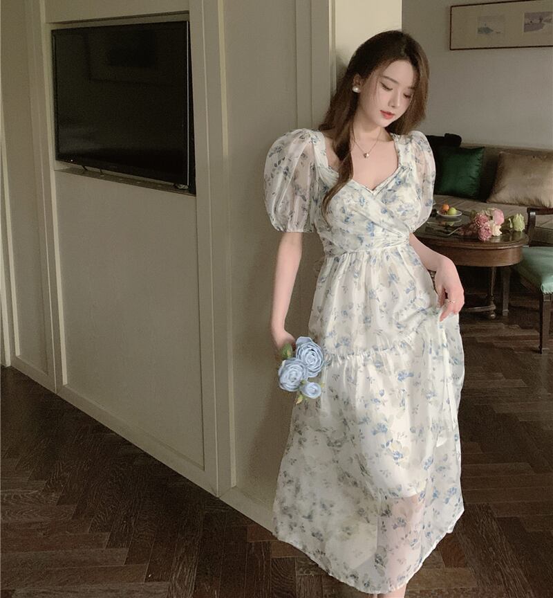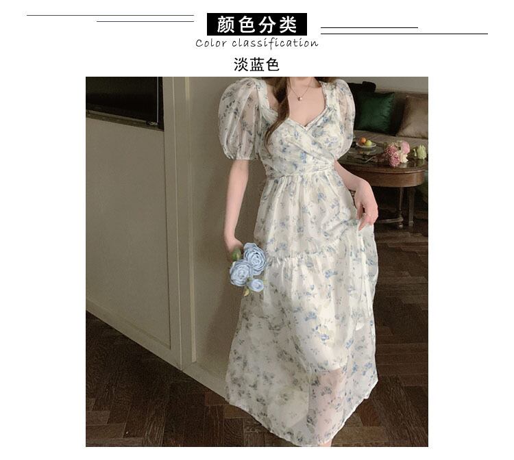 シフォンドレス サマースタンダードVネックフローラルスカート ウェストAライン レトロ 夏物 花柄 フラワークラフター66515491354