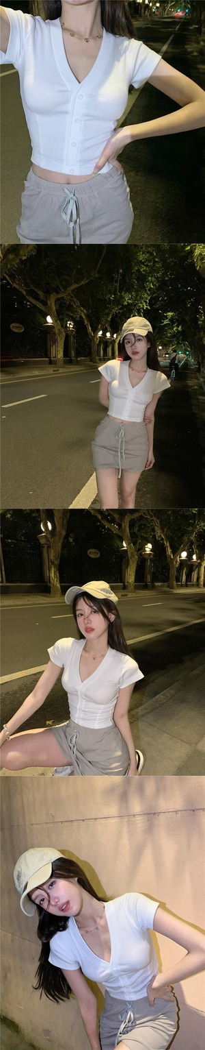ショートTシャツ サマーVネックスリムニットトップス ピンク 夏物 フラワークラフター66586060499