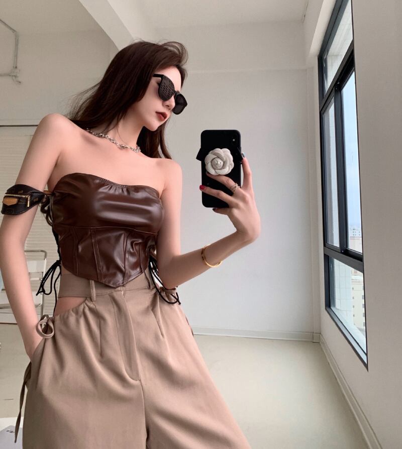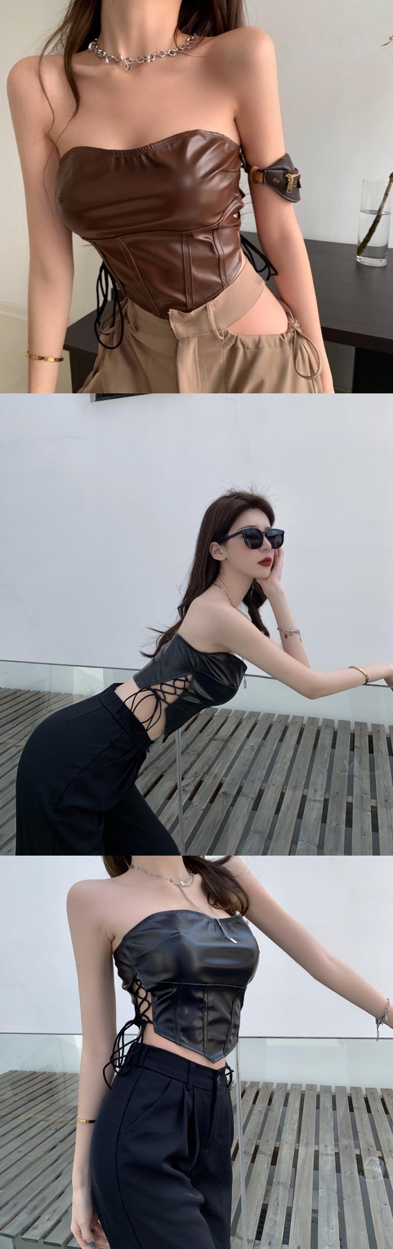 トップス サマーレーススリムショート 夏物 レースアップ フラワークラフター15763380504
