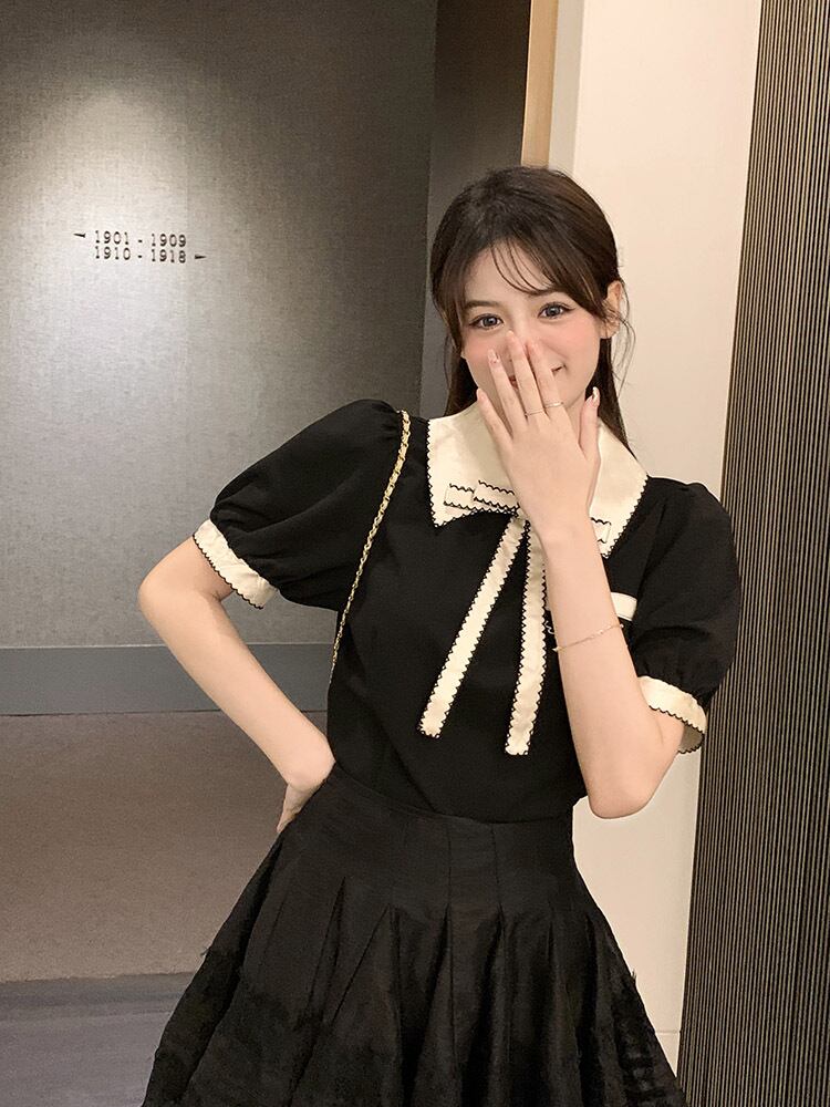 スリーブシャツ レディースサマースタイルリボンショートトップス 夏物 フラワークラフター22691315037