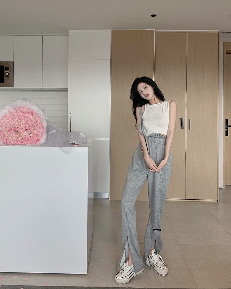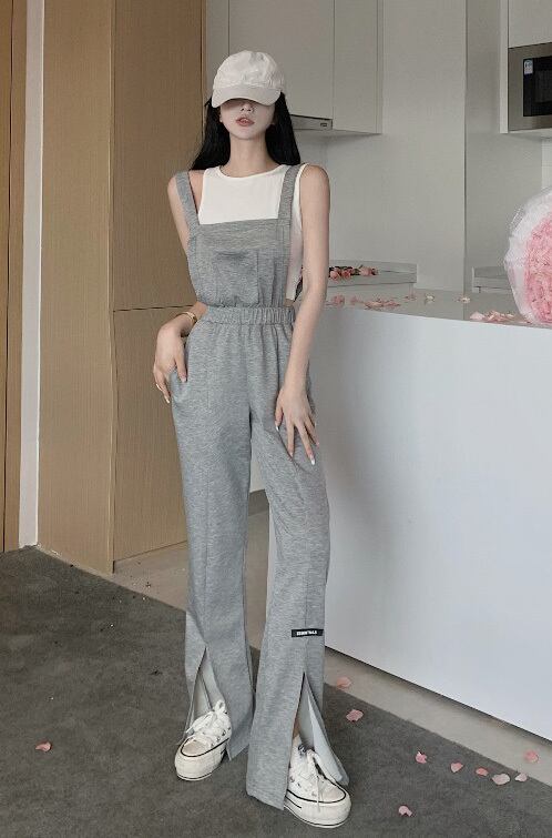 グレーサマールーズカジュアルハイウェスト薄手ジャンプスーツ オールインワン 夏物 フラワークラフター9280472830