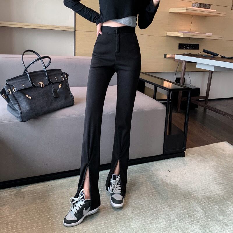 ブラックカジュアルパンツ サマーハイウェストウェスト薄手 夏物 フラワークラフター34308972009