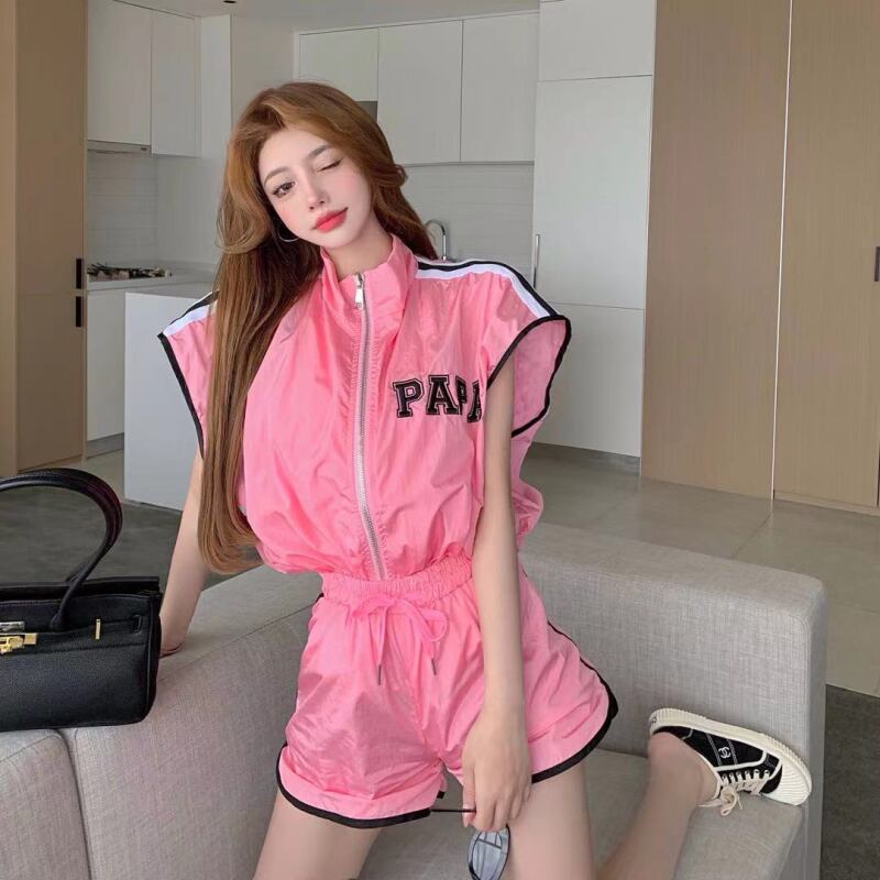 サマーカラージッパージャケット ワイドレッグショーツ レッドカジュアル ピンク 夏物 ブルマー ワイドパンツ フラワークラフター30340045614