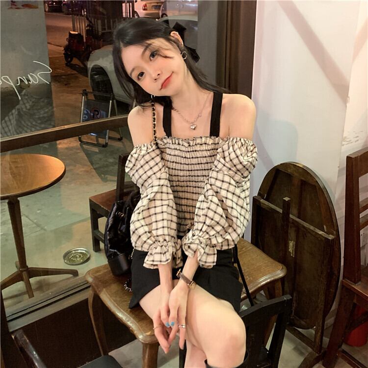 格子柄スリーブシャツ サマーストラップレススリムショートトップス ドレス 夏物 フラワークラフター27768788705