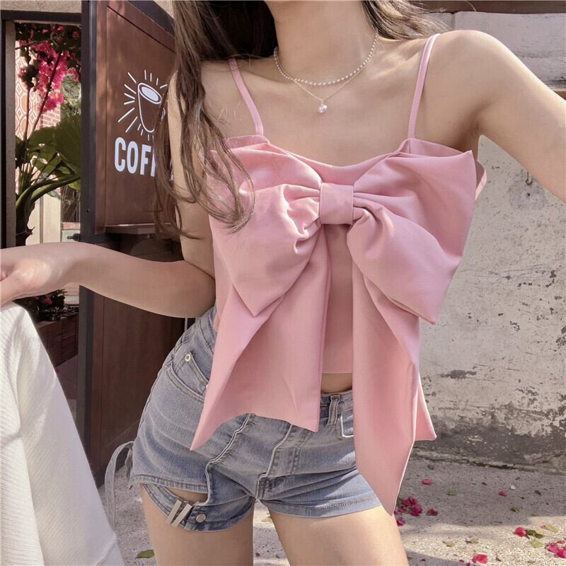 サマーリボンスタイルクロップドトップス ピンク 夏物 フラワークラフター35833908567