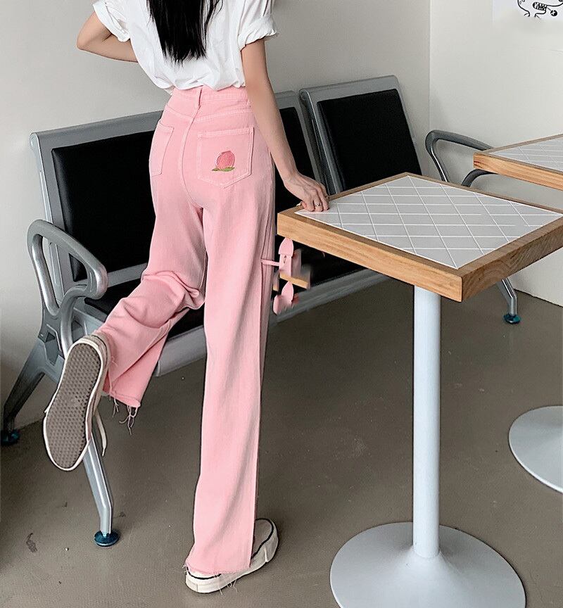 カジュアルパンツ レディースサマールーズレッドポケットハイウェストウェスト ピンク 夏物 フラワークラフター70666729236