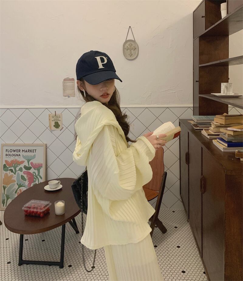 レッド薄手ジャケット サマールーズジッパーフードトップス ロング 夏物 フラワークラフター56590021325