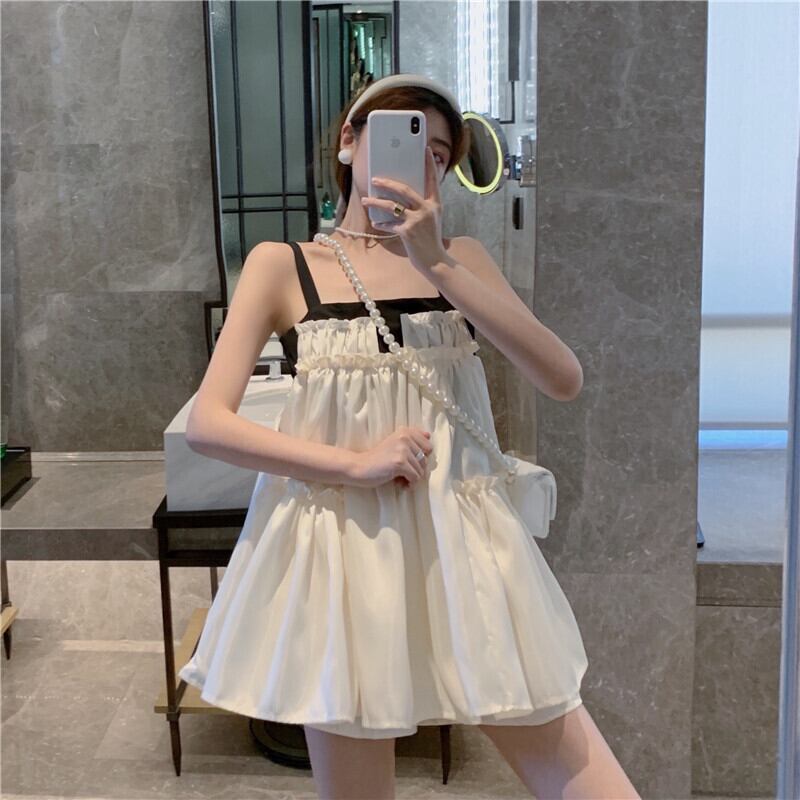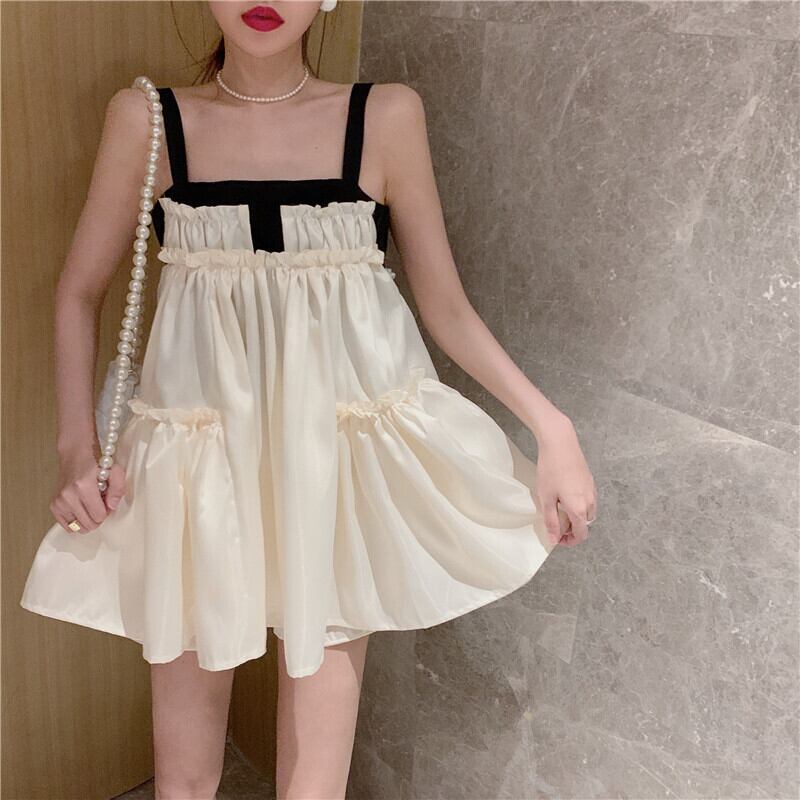色:白いドレス,黄色のサスペンダースカート