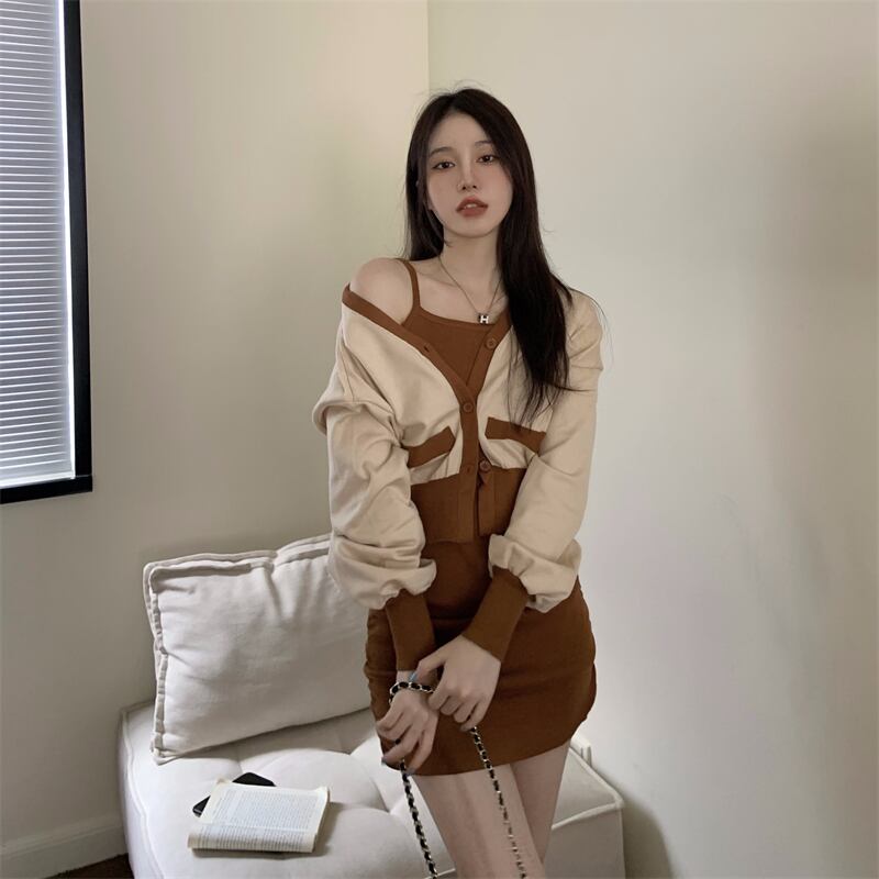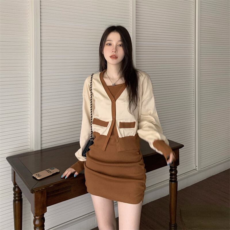ニットカーディガンスプリングオータムスタイルジャケット ルーズショートトップス ロング 春物 秋物 フラワークラフター46251543417