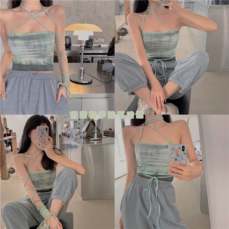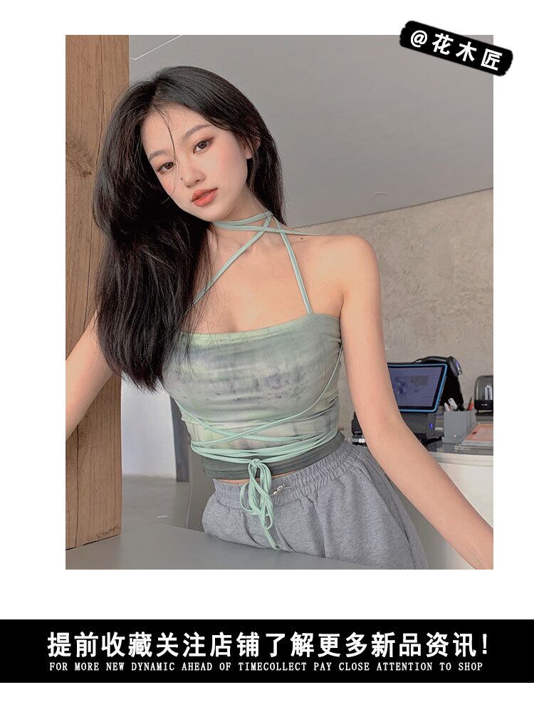 サマーレッドストラップ スリムバックショートトップス 夏物 フラワークラフター58733967493