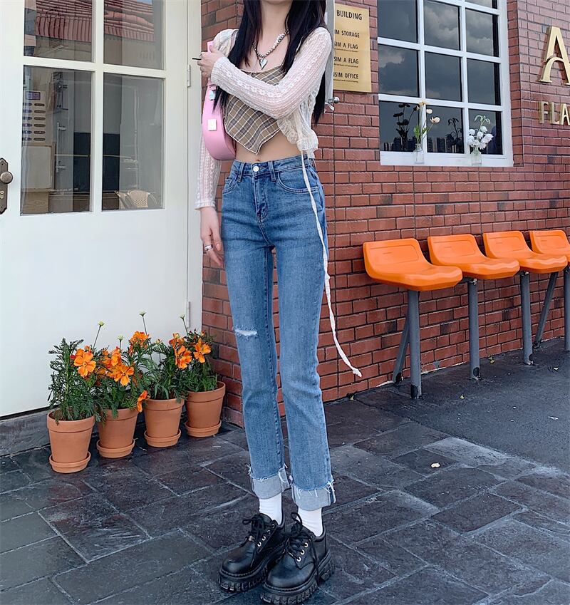 ジーンズ スリムパンツ サマーウェスト 夏物 フラワークラフター24160135349