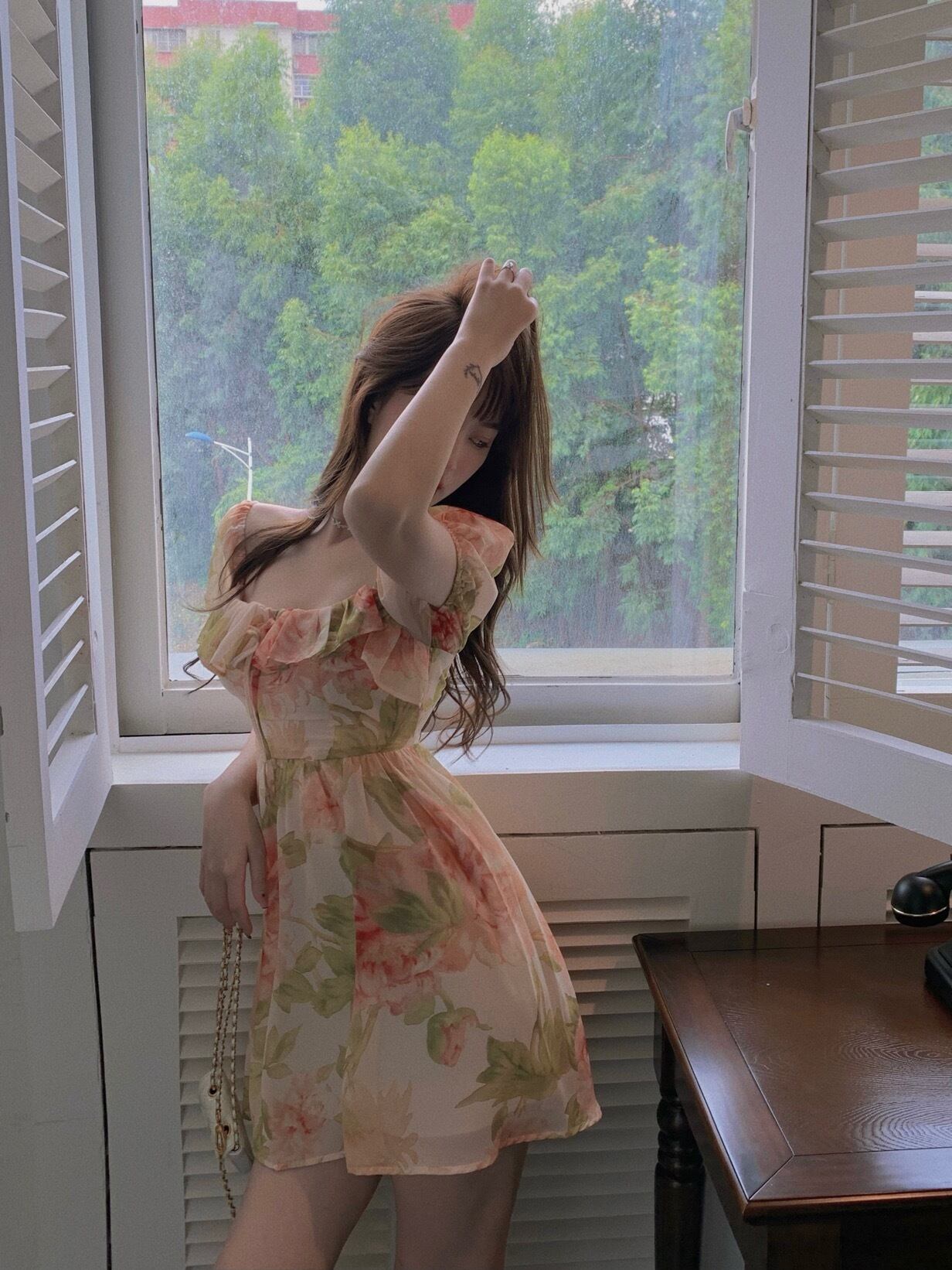 フローラルシフォンドレス サマースリーブウェストショートスカート 大人ガーリー スウィート キュート カジュアル 夏物 花柄 フラワークラフター31936568022