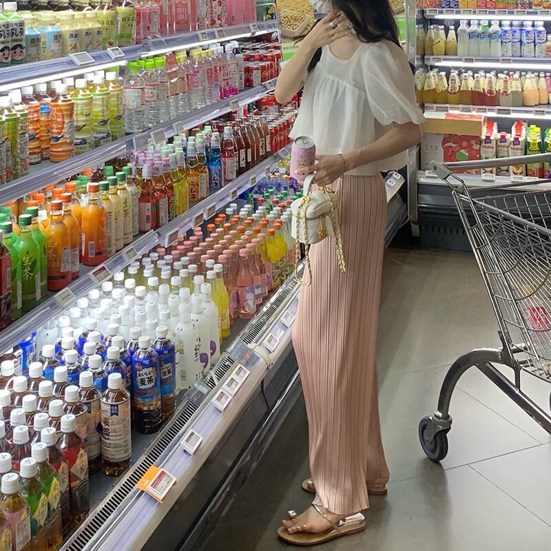 色:ホワイトトップシングルピース,ピンクのパンツ