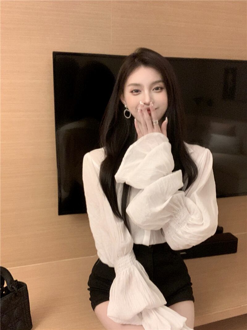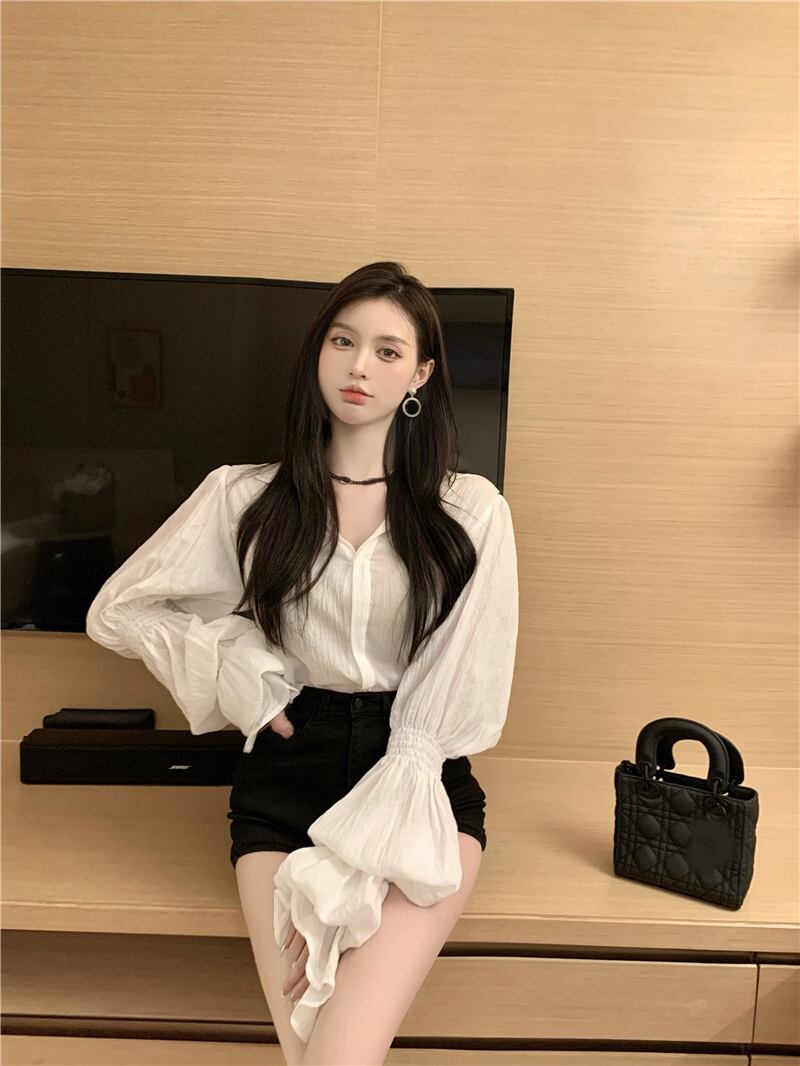 ホワイトスリーブシャツ スプリングオータムルーズトップス 春物 秋物 フラワークラフター52571612930