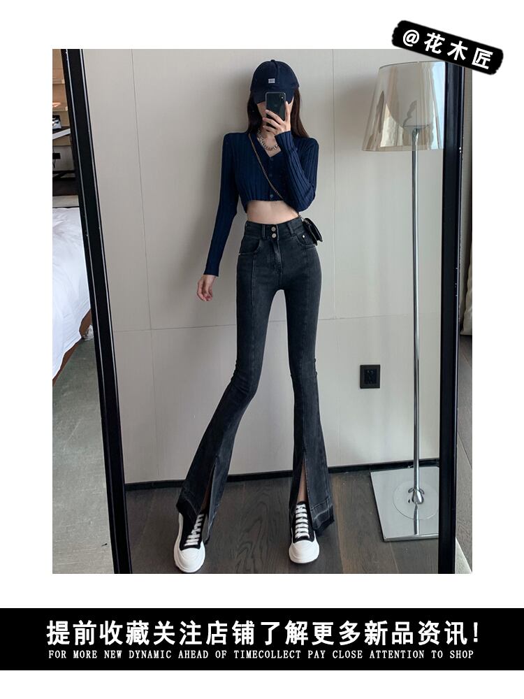 スタンダードジーンズ オータムハイウェスト薄手パンツ レッド レトロ 秋物 フラワークラフター66503461003