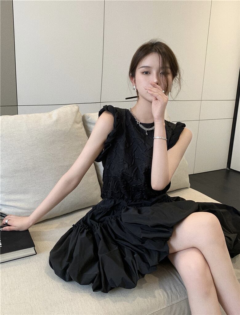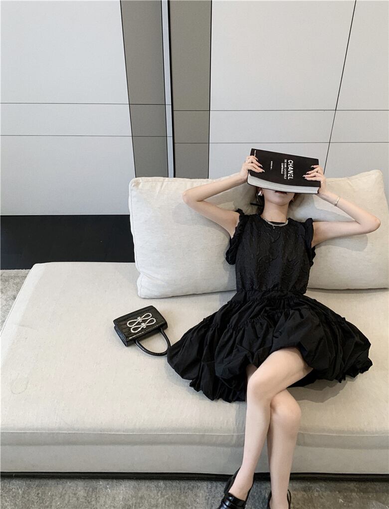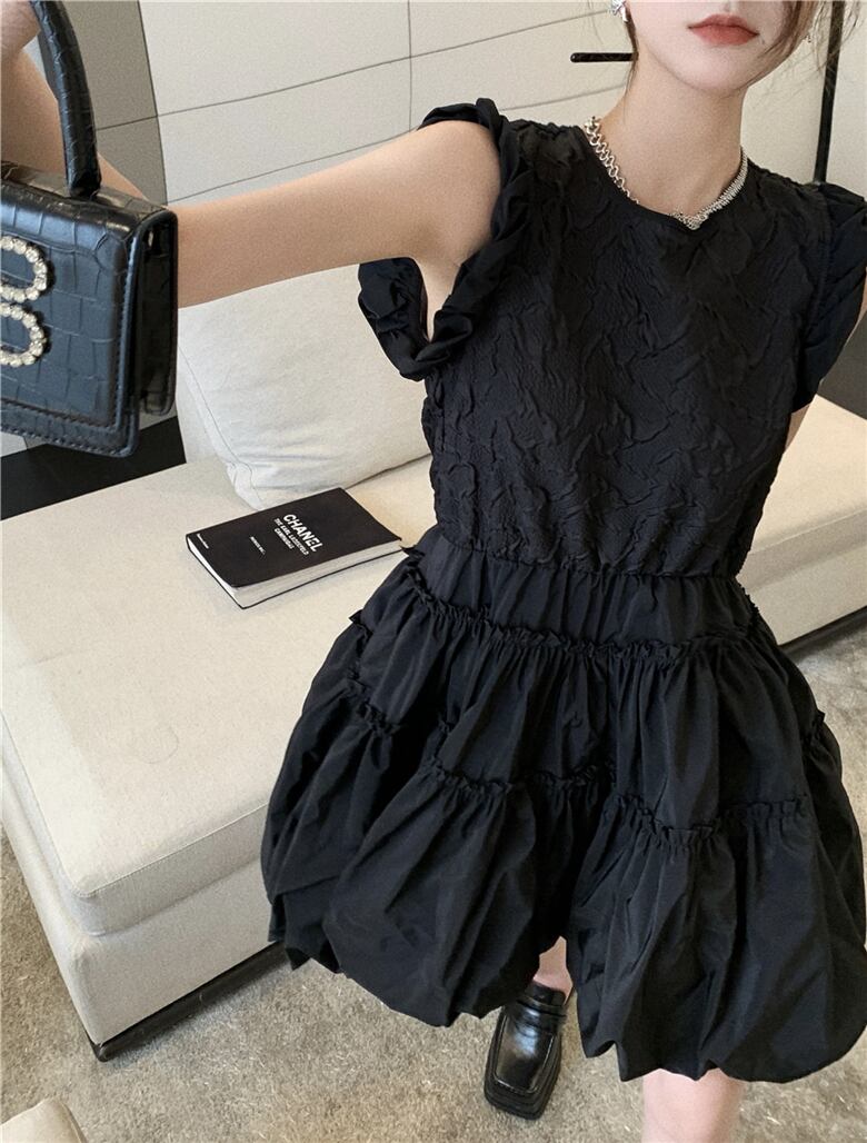 スタイルブラックドレス サマースタンダードジャカードウェストスカート レトロ 夏物 フラワークラフター47503265838