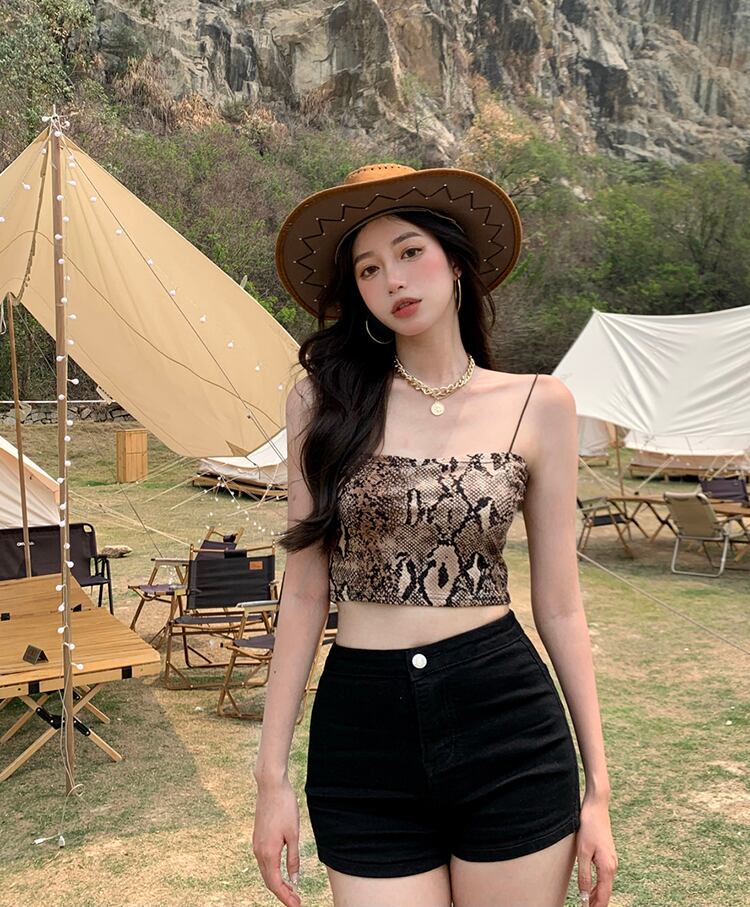 サマースネークプリント柄バックスリムショートトップス 夏物 フラワークラフター2575602223
