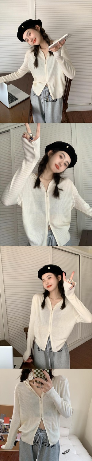 フードニットカーディガンスプリングオータムレッドルーズショートトップス ロング 春物 秋物 フラワークラフター74190770600