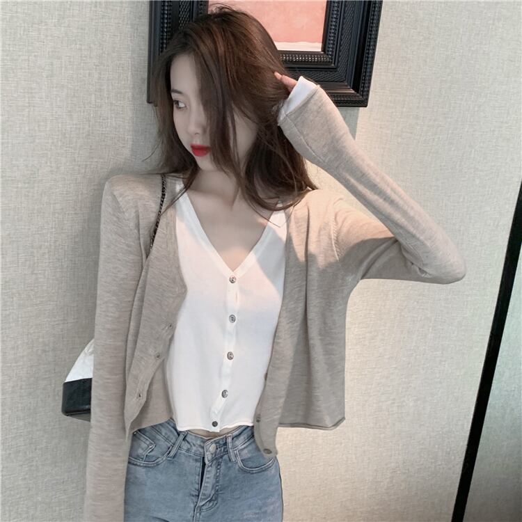 ツーピース Vネックセーター レディースオータムカーディガンショートコート 薄手 ロング 秋物 ステッチ フラワークラフター61475977622
