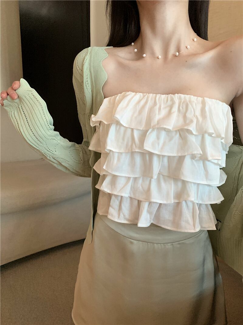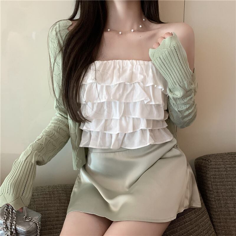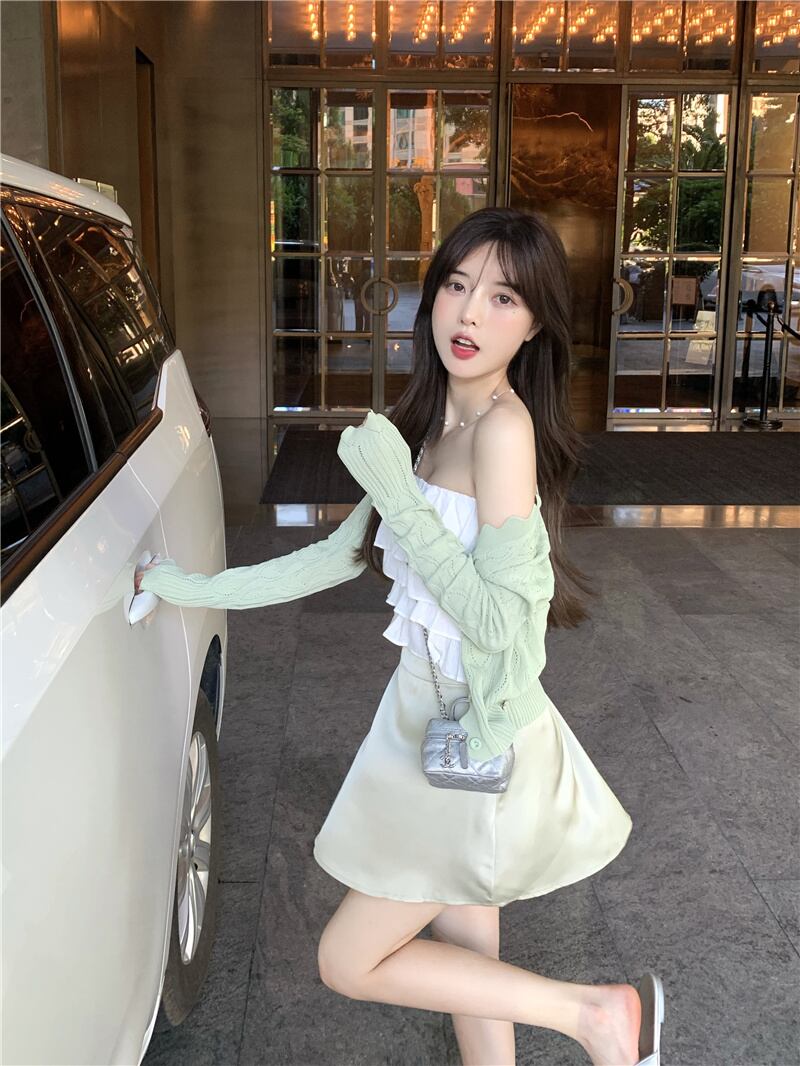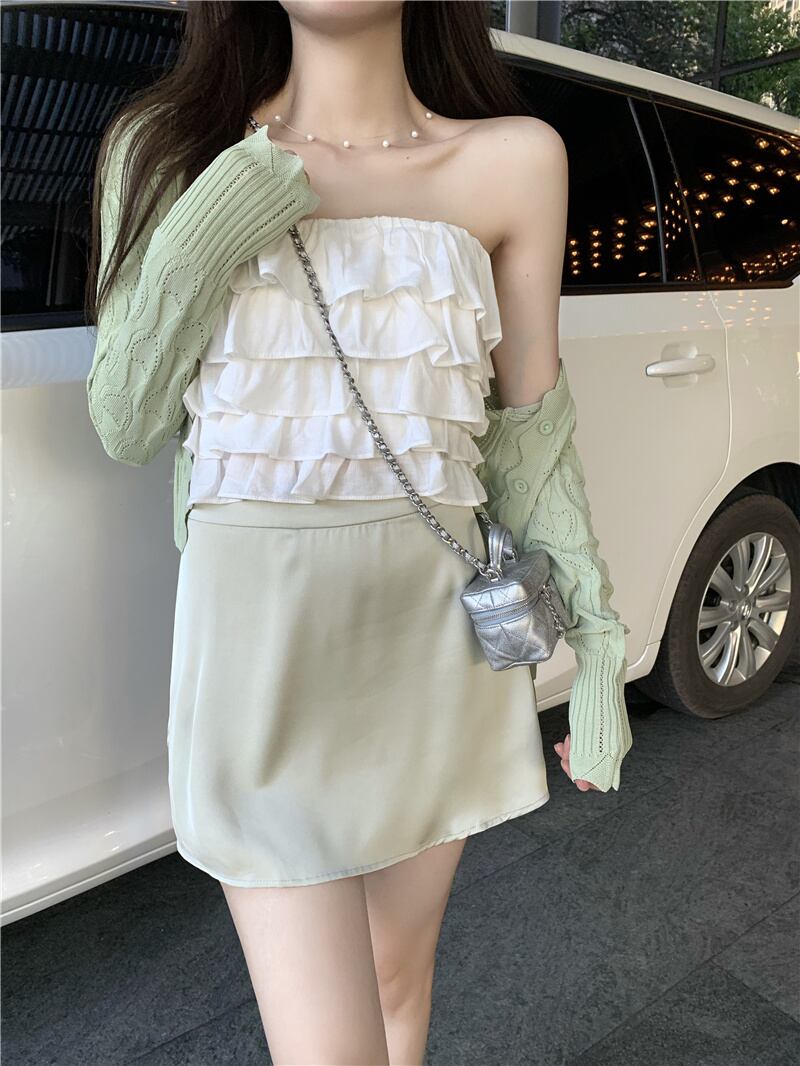 色:ホワイトチューブトップシングルピース,緑のハーフスカートワンピース,グリーンカーディガンワンピース