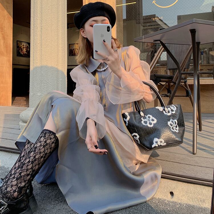 カラーシャツ サマースタイルスタンダードスカート レトロ 夏物 フラワークラフター76182275976