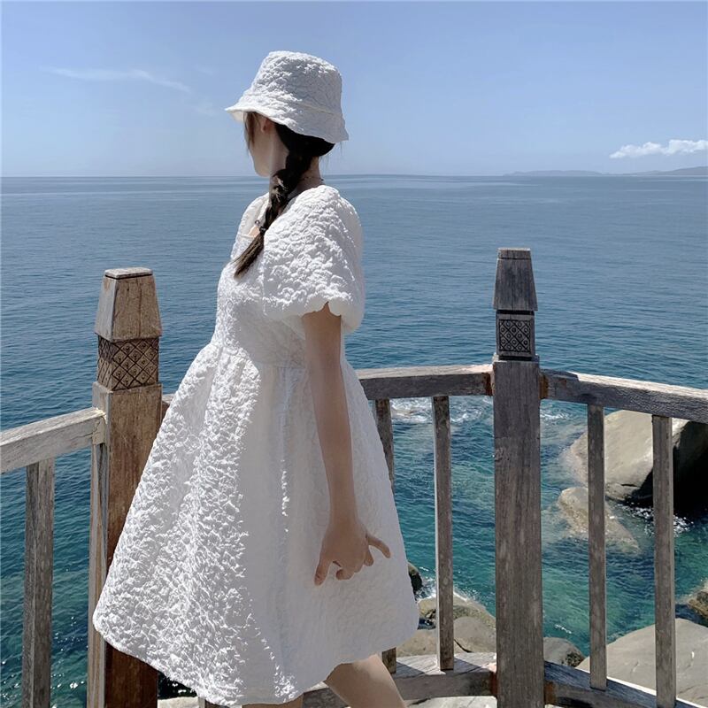 ホワイトドレス サマースタンダードスカート ルーズAライン レトロ 夏物 フラワークラフター96460040245