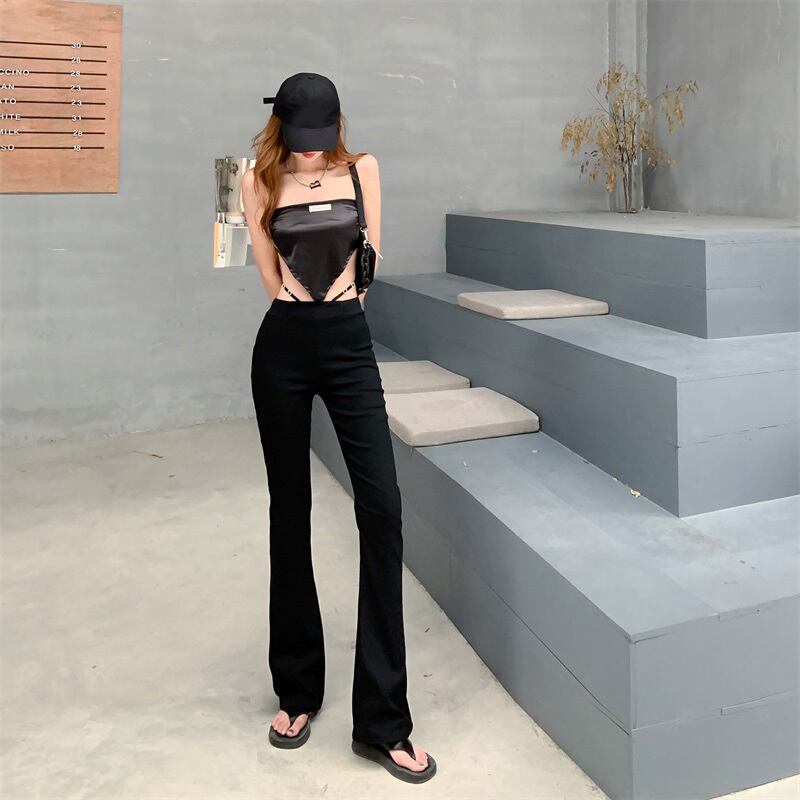 ブラックカジュアルパンツ スリムフィットサマーレッドハイウェストウェスト 夏物 フラワークラフター61340020459