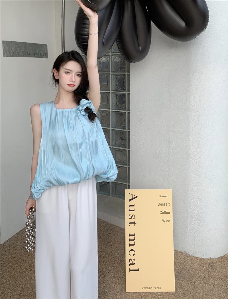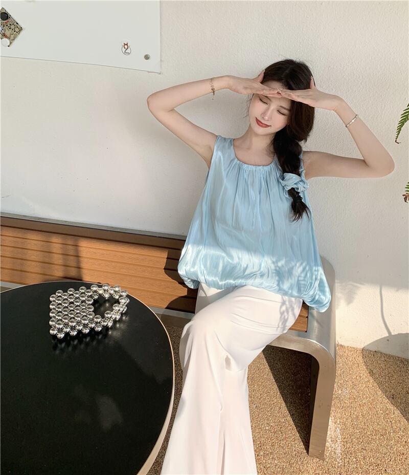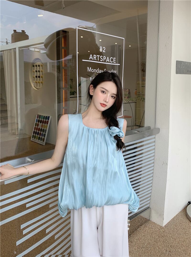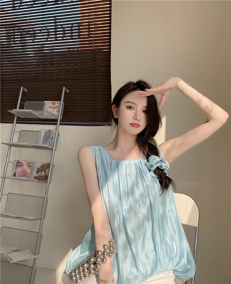 ブルーサマースリムノースリーブトップス 夏物 フラワークラフター78204619190