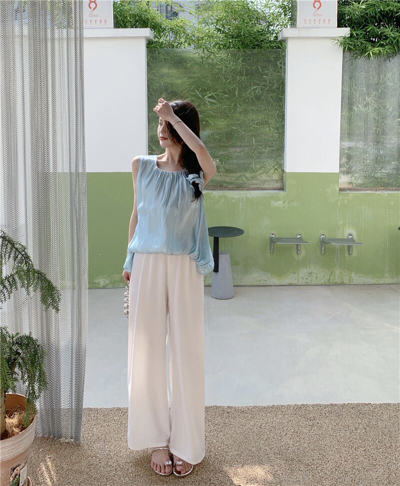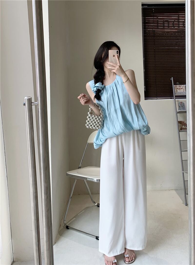 色:ベビーブルートップ,単一の白いズボン