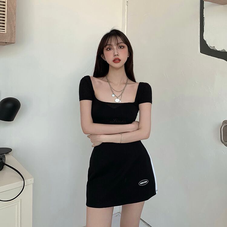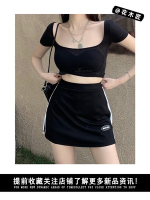 ブラックショートTシャツ サマー薄手スリムトップス 夏物 フラワークラフター25064160905