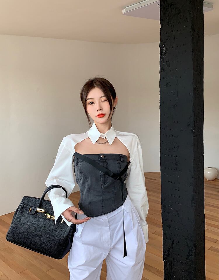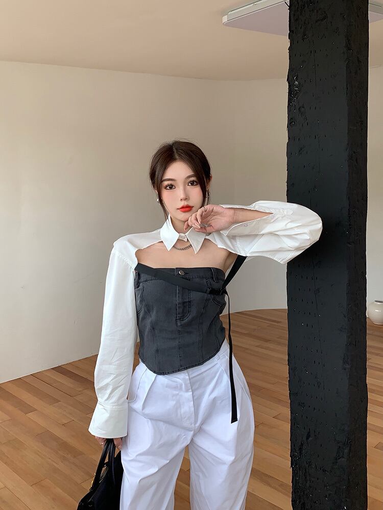 色:グレーチューブトップシングルピース,白いシャツのワンピース