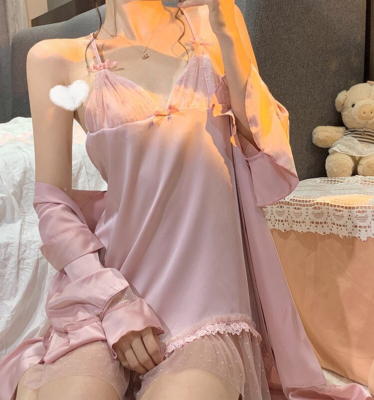 色:ピンクのサスペンダードレス,ピンクカーディガンワンピース