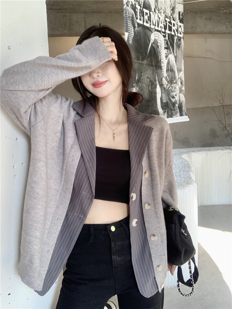 セーター ジャケット オータムスタイルブラウス ロング 秋物 ステッチ フラワークラフター84299918490