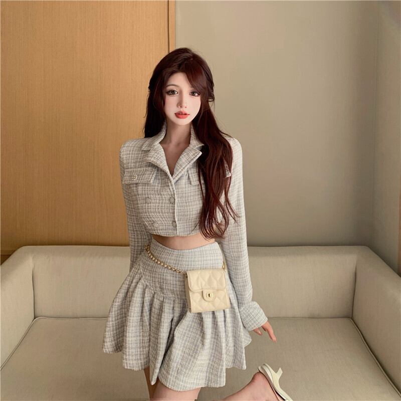 オータムショートジャケット プリーツスカート 秋物 フラワークラフター65496078742