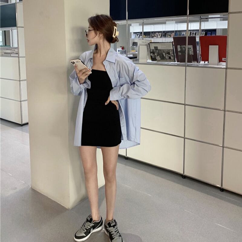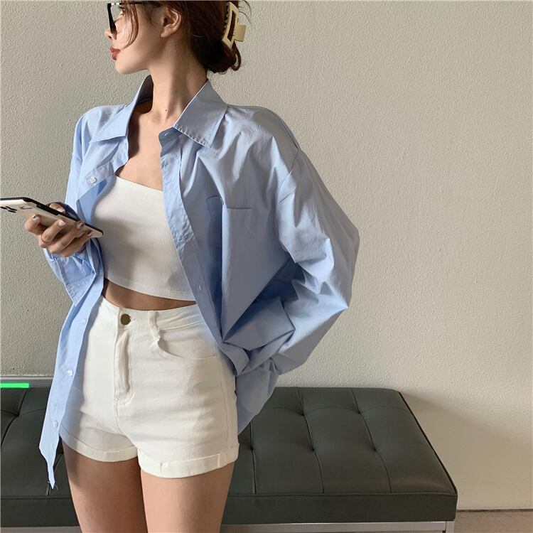ブルー薄手シャツ レディースオータムルーズトップス ロング 秋物 フラワークラフター44352715672