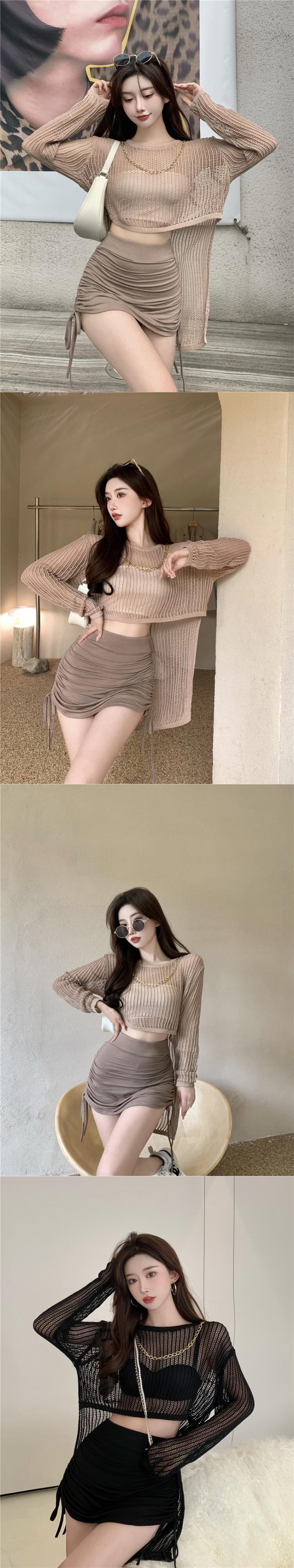 色:コーヒーセーター,黒いセーター,白いセーター,コーヒーキュロットワンピース,ブラックスカートワンピース