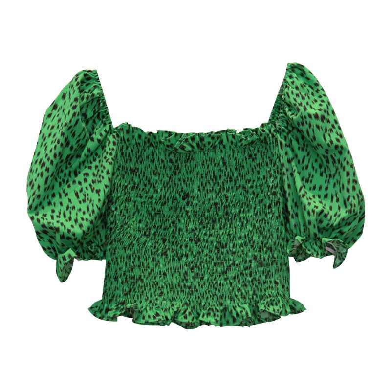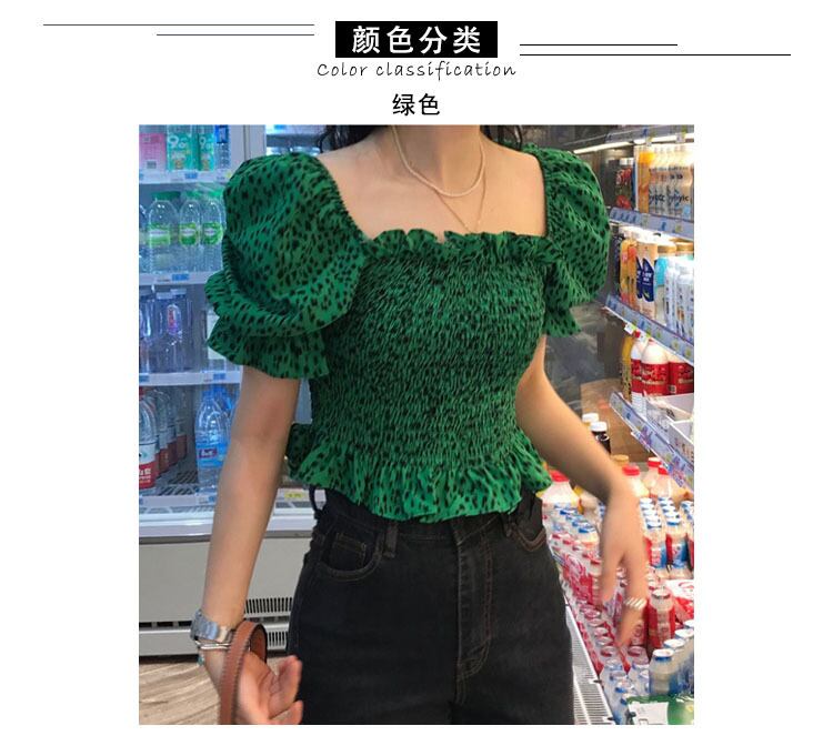 レオパードプリント柄シャツ レディースサマーカラープリーツスリムショートスリーブトップス 夏物 スクウェア フラワークラフター25603720700