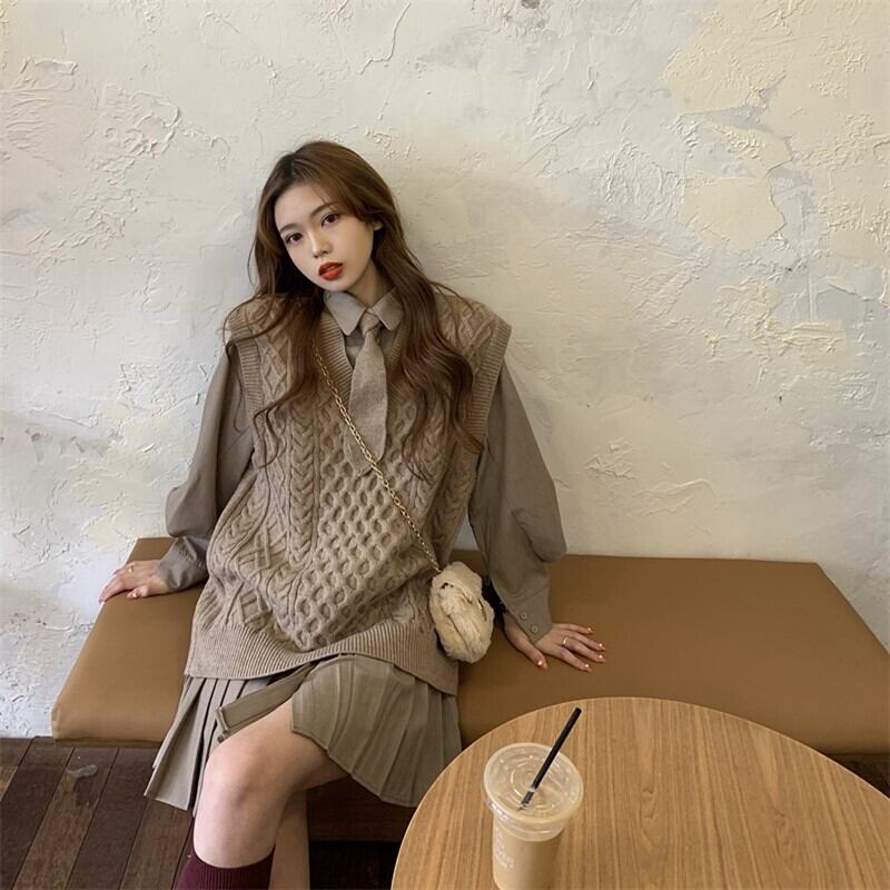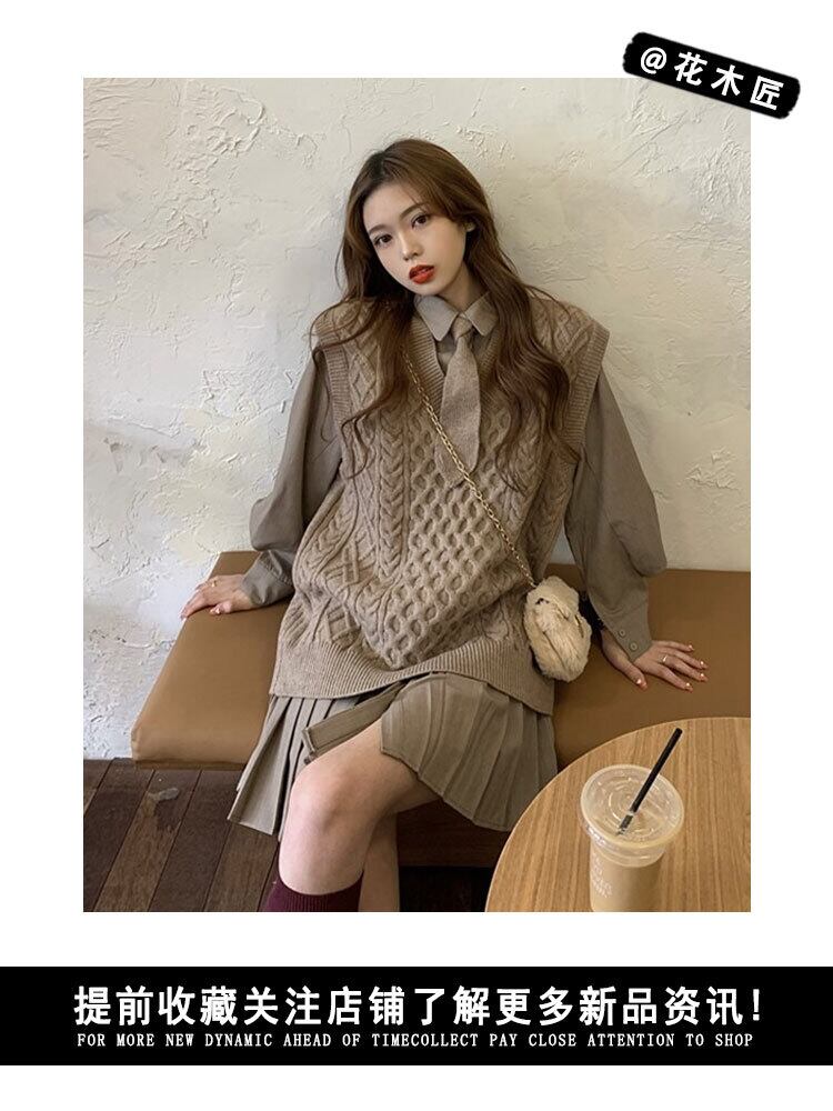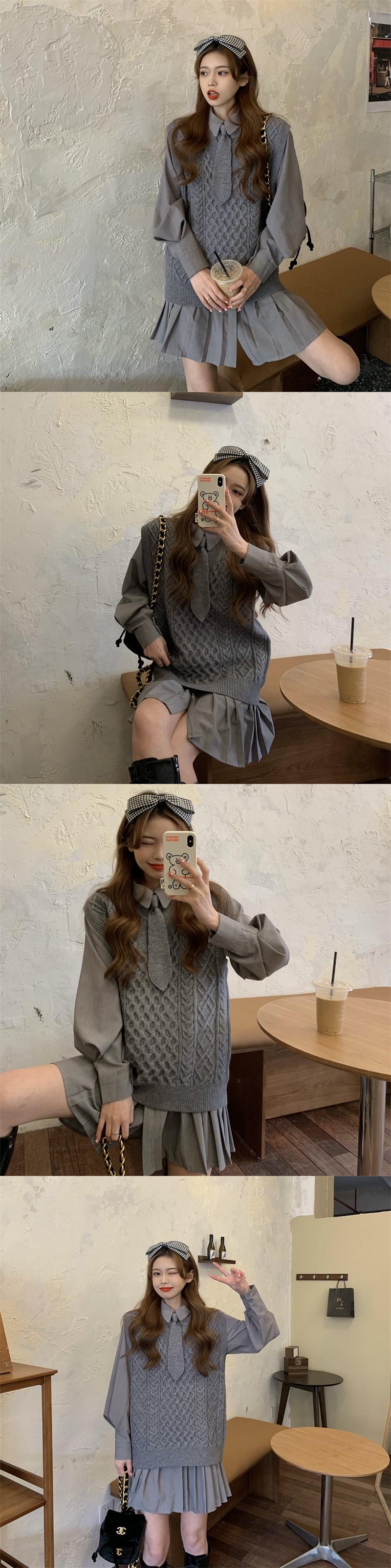 色:カーキ一枚,カーキ色のシャツ,グレーベストシングルピース,グレーのシャツワンピース