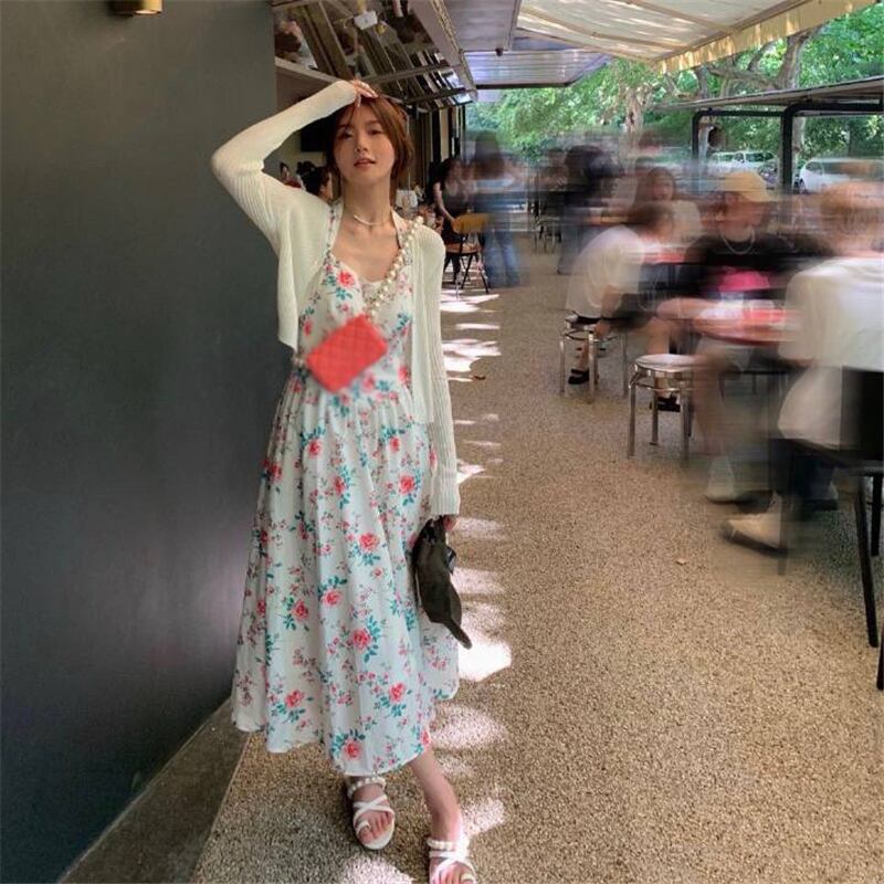 色:花柄ドレス,ホワイトカーディガンワンピース