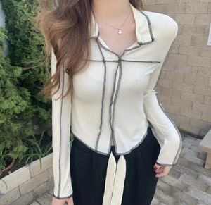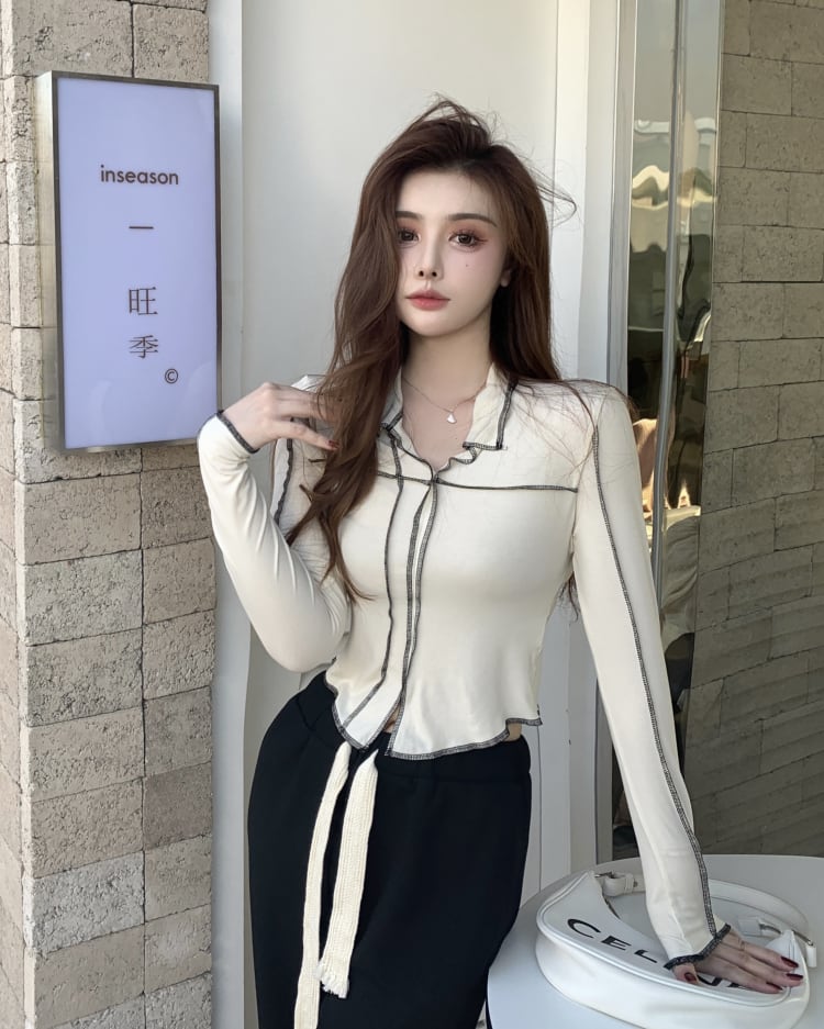 カラーTシャツ レディーススプリングオータムスリムクロップドトップス ロング 春物 秋物 フラワークラフター94533059656