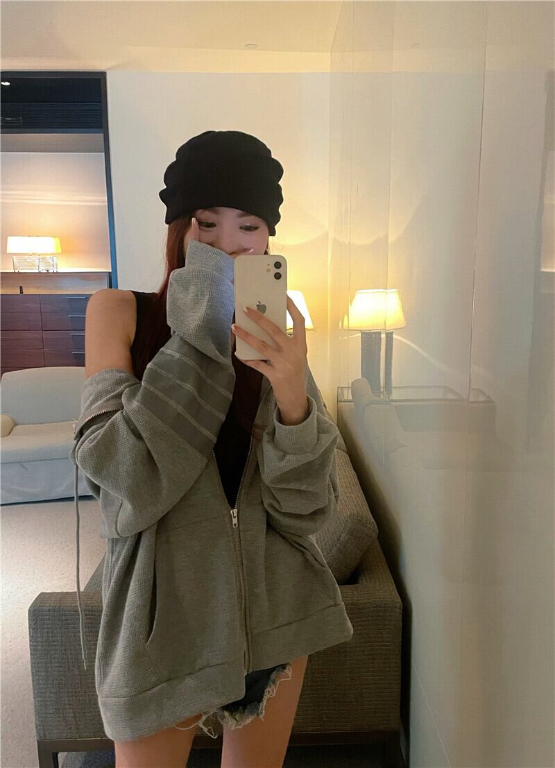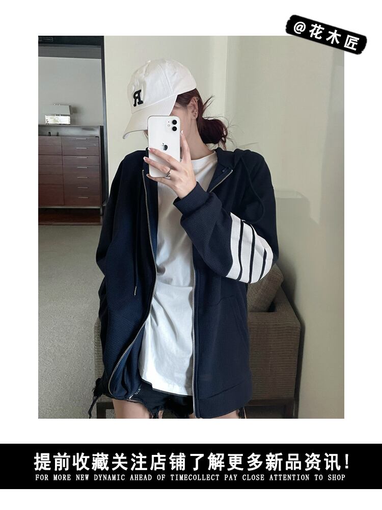 フードセーター コート スプリングオータムスタイルルーズストライプトップス ロング 春物 秋物 フラワークラフター79806747371