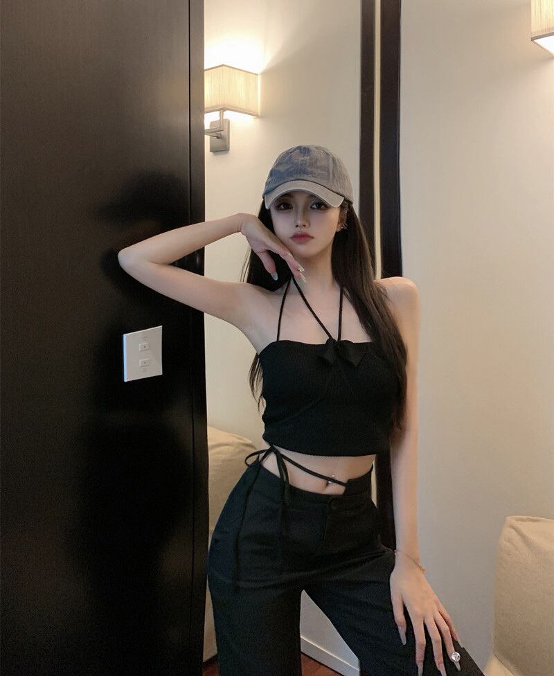 ブラックレディースサマーリボンバック薄手ショートトップス 夏物 フラワークラフター36527052711