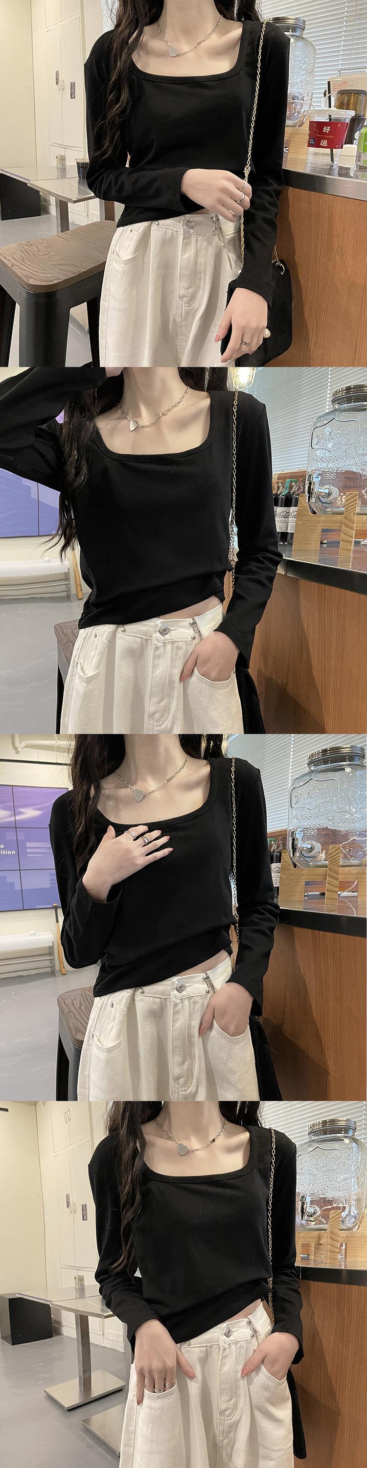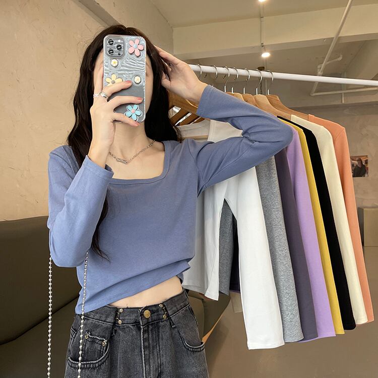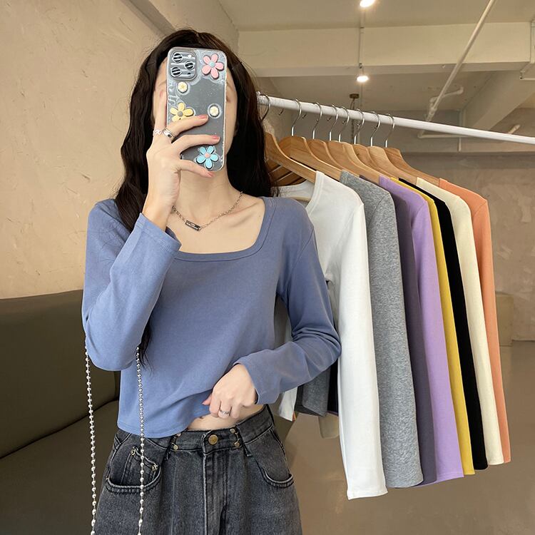 ブルーTシャツ オータムスリムショートトップス ロング 秋物 スクウェア フラワークラフター79220873800