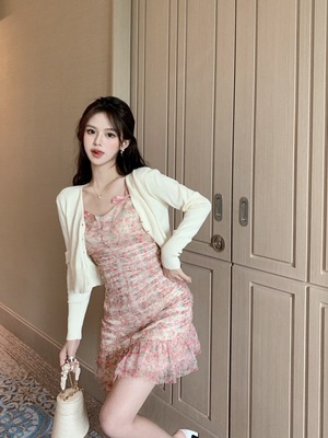 色:ピンクスカートワンピース,ニットカーディガンワンピース