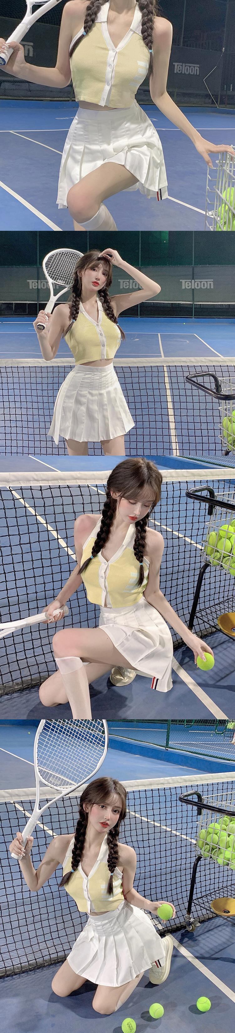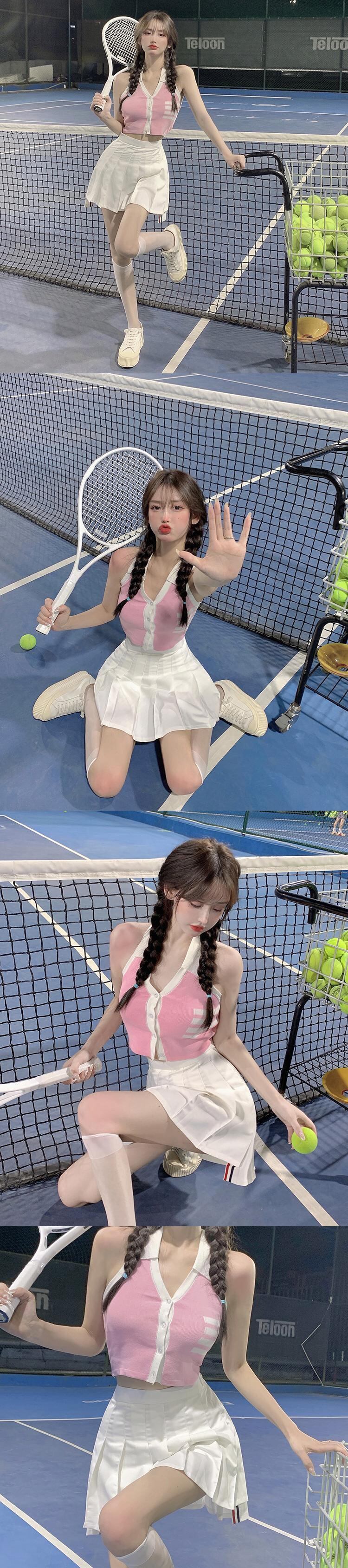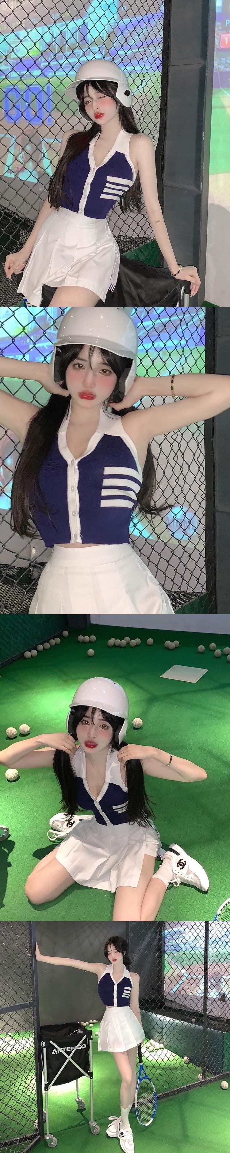 色:ネイビーのベスト,水色のベストシングル,さくらピンクベスト,太郎パープルベスト,ライトベージュベスト,白いプリーツスカート,ボタンキュロットワンピース